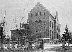 Knoop's sons Theodor and Andreas took over the factory as directors when Johann Prowe passed away in 1901.[16] Kreenholm dominated the local economy in Narva during this time.[17] In 1903 the company produced satin, lustrine, muslin, and batiste.[16] The wages paid in 1910 amounted to $1,370,000. In that year, 74,660 bales of cotton were used, from which 34,861,796 pounds of yarn and 159,994 pieces of cloth (average 45 yards each) were used.[18] Before World War I, this mill employed 10,400 people and manufactured 17,500 thousand tonnes of yarn and 75 million meters of fabric annually, which amounted to roughly 10% of the cotton cloth production in the empire.[16] The valuation of the company during this time was now around 12 million silver roubles and its assets totaled 25 billion roubles. It was one of the largest textile manufacturers in the world.[16]