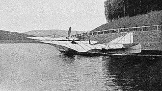 Unable to afford to replace the engine, Kress continued taxiing trials. The last of these was on 3 October[6] on the Wienerwaldsee reservoir at Tullnerbach, in which he was forced to swerve suddenly to avoid a groyne.[5] As a result of the violent maneuver, the supports for one of the pontoons failed,[4] causing the Drachenflieger to capsize and sink.