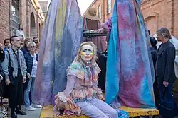 Kris Lemsalu's exhibition "Birth V – Hi and Bye" was at the Estonian pavilion in Venice biennale 2019. Lemsalu characterized the city of Venice "as a living creature, perpetually decadent and yet endlessly revived."[11] Unlike her earlier works in which Lemsalu focused on engaging death as the main topic, in her Venice Biennale show, she was "more concerned with life – although death wears a carnival mask in Venice anyway."[12] During this time, Lemsalu worked along with group of people including "the curator Maria Arusoo, the poet Andrew Berardini, the mentor Sarah Lucas, the researcher Irene Campolmi, her friend/collaborator Tamara Luuk and performers who brought the inaugural ritual to life during the opening of the Biennale."[13]