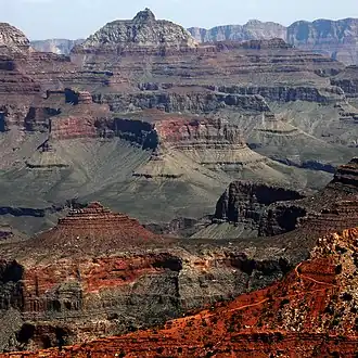 | Rock type(s) | Esplanade Sandstone-(cliff-prominence-debris) Supai Group, Redwall Limestone, Tonto Group-(3 units), 3_Muav Limestone, 2_Bright Angel Shale |