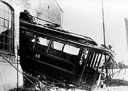 The second generation of electric trams, Class SS, were delivered in 1913 and 1914. The thirty-seven trams were significantly larger due innovations allowing longer wheelbases.[20] By 1915 the street tram network consisted of thirteen services, of which two were operated by KES and six were joint operations. The joint services were operated the relative number of trams in proportion of the ownership of trackage along the line and where each company simply kept the revenue it created on their services.[35] The first women conductors were hired in 1916.[36] The Stephenson and Skabo horsecar trailers were taken out of service in 1917 and 1918. Sixteen were sold to the Bergen Tramway and the Trondheim Tramway.[37]