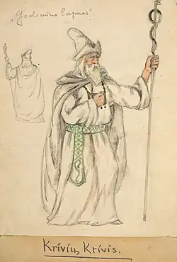 Kriwe Kriwaito (Latvian: krīvu krīvs, Lithuanian: krivių krivaitis) or simply Kriwe (Latvian: krīvs, Lithuanian: krivis) was the chief priest in the old Baltic religion. Known primarily from the dubious 16th-century writings of Simon Grunau, the concept of kriwe became popular during the times of romantic nationalism. However, lack of reliable written evidence has led some researchers to question whether such pagan priest actually existed. The title was adopted by Romuva, the neo-pagan movement in Lithuania, when Jonas Trinkūnas was officially installed as krivių krivaitis in October 2002.[1]