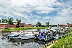 The Kronverksky Strait (Russian: Кронверкский пролив) is a narrow channel separating Petrogradsky and Zayachy islands in Saint Petersburg, Russia.[1] It forms an arc approximately 1 kilometre (0.6 mi) long, about 50 metres (160 ft) wide and 4 metres (13 ft) deep. To the south is Zayachy Island, which is dominated by the Sts. Peter and Paul Fortress, and to the north is the Kronverk on Petrogradsky Island. It is spanned by the Kronverksky Bridge to the east and the Ioannovsky Bridge to the west.