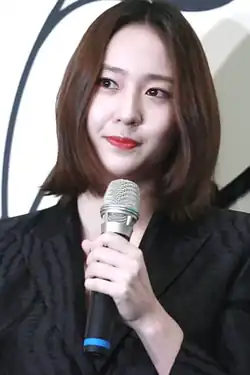 Jung has made a significant impact in K-pop, acting, and fashion. As a member of f(x), she contributed to shaping the group's distinctive sound and image, gaining recognition for her charismatic stage presence. In 2015, American music magazine Spin called f(x) the "world's greatest living pop group" at the time.[66] In 2017, Billboard ranked f(x) at number seven on their "Top 10 K-pop Girl Groups of the Past Decade" list.[67] Beyond her music career, Jung also has successful acting career, with notable roles in popular K-dramas like The Heirs, and Prison Playbook, as well as in the movie Cobweb.[23][40][55]