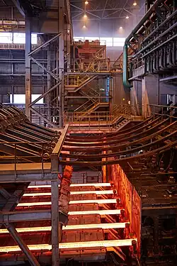 After the formation of the Soviet Union and the expulsion of Austro-Hungarian forces and then anti-communist forces under Anton Denikin occupying the region relative normalcy was resumed.[1] Planning for the Kryvorizhstal began in 1929, with the intention being to produce an integrated steel plant taking iron ore and carbon all the way to finished steel products.[3] In 1931 the chairman of the Supreme Economic Council of the USSR - Grigori (Sergo) Ordzhonikidze signed a decree ordering its construction[4] and the same year the foundation stone of the metallurgical works was laid, workers included prison labourers, and initially German and Americans as well. In August 1934 the first metal was produced at Kryvorizhstal;[1] then known as 'Kryvyi Rih Metallurgical Works' (Криворожский металлургический комбинат)[4]