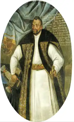 Prince Krzysztof Zbaraski (Polish: Krzysztof Zbaraski, Ukrainian: Христофор Збаразький, 1580 – 6 March 1627) was a Polish–Lithuanian member of the gentry social class (szlachta). During his life he was a Master of the Stables of the Crown (or koniuszy koronny), a member of special committee for Cossacks and tariffs, a skilled diplomat, and a politician of the Polish–Lithuanian Commonwealth. He was Starost of Kremenets, Wiślica, Hrubieszów and Bolesławiec.