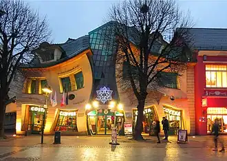 Krzywy Domek (pronounced [ˈkʂɨvɨ ˈd̪ɔmɛk], Polish for "crooked house") is an unusually shaped building in Sopot, Poland.[1]