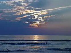 Kuakata (Bengali: কুয়াকাটা) is a town of Patuakhali located in southern Bangladesh known for its panoramic sea beach.[1][2] Kuakata beach is a sandy expanse 18 kilometres (11 mi) long and 3 kilometres (1.9 mi) wide.[3] The beach offers unobstructed views of both the sunrise and sunset over the Bay of Bengal.[1]