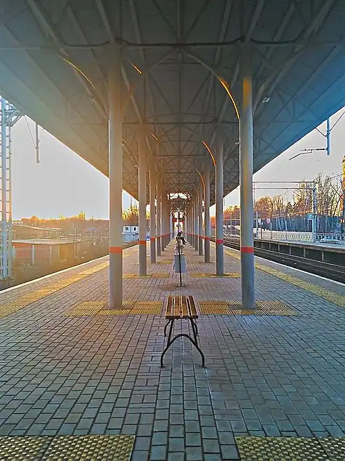 Kuchino (Russian: Кучино) is a railway station located in Balashikha Urban Okrug of Moscow Oblast, Russia. The station serves suburban traffic of Gorkovsky suburban railway line. The westbound trains terminate at Moscow Kursky railway station in Moscow. The eastbound trains terminate at the stations of Zheleznodorozhnaya, Kupavna, Fryazevo, Zakharovo, Elektrogorsk, Krutoye, Petushki, and Vladimir.[1] The station is operated by the Moscow Railway.