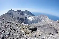 Shindake crater erupted on December 18, 2018, ejecting an ash cloud 2 kilometers into above cloud coverage.[7] Thirty days later on January 17, 2019, Shindake erupted again, sending pyroclastic flows 1.5 kilometers to the southwest and northwest of the crater as well as an ash cloud 6 kilometers into the atmosphere.[8]