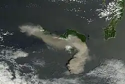 Shindake crater erupted on December 18, 2018, ejecting an ash cloud 2 kilometers into above cloud coverage.[7] Thirty days later on January 17, 2019, Shindake erupted again, sending pyroclastic flows 1.5 kilometers to the southwest and northwest of the crater as well as an ash cloud 6 kilometers into the atmosphere.[8]