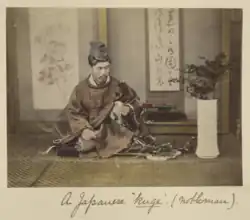 The kuge (公家; Japanese pronunciation: [kɯ.ɡe, -ŋe][1]) was a Japanese aristocratic class that dominated the Japanese Imperial Court in Kyoto.[2] The kuge were important from the establishment of Kyoto as the capital during the Heian period in the late 8th century until the rise of the Kamakura shogunate in the 12th century, at which point it was eclipsed by the bushi. The kuge still provided a weak court around the Emperor until the Meiji Restoration, when they merged with the daimyō, regaining some of their status in the process, and formed the kazoku (peerage), which lasted until the Japanese peerage system was abolished with the 1947 constitution. Though there is no longer an official status, members of the kuge families remain influential in Japanese society, government, and industry.[3]