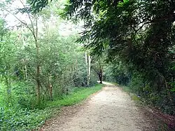 Kukkarahalli Lake also called Kukkarhalli Kere (Lake is ‘’kere’’ in local Kannada language), located in the heart of the Mysore city, adjoins the Manasgangotri (University of Mysore),[1] the Kalamandir (Rangyana) and the Central Food Technological Research Institute (CFTRI) campus (separated by the Hunsur Road). It provides lung-space to the city. Mummadi Krishnaraja Wodeyar (1794–1868) of the Mysore dynasty (Kingdom of Mysore) was responsible for getting the lake created, in the year 1864, to provide water for irrigation to about 4000 ha (10,000 acres) of land outside the city.[2] The Lake also used to be a source of water supply to the city of Mysore but over the years, sewage and excessive land encroachments (mostly illegal) and blockage of water flow sources almost led to the eutrophication of the lake. The University of Mysore and the citizen forums of Mysore continue to make efforts to preserve the lake by implementing several remedial measures.[3][4] There is a 3.5-km walkway on the periphery of the lake with shaded stone benches for visitors to sit, relax and enjoy the scenic serenity of the lake.[5]