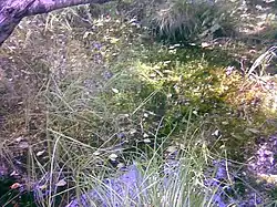 Kūlgrinda (plural kūlgrindos; from the Samogitian kūlis 'stone' and grinda 'pavement', itself from grįsti 'to rake, pull together')[1] is a hidden, usually winding, underwater stony road or ford across swamps, swampy areas, lakes, or along rivers, used as a defense in the lands of Baltic tribes, in particular, in the history of Lithuania.[1][2] Similar secret roads made primarily of wood and ground were known as medgrinda (from medis, 'tree') and žemgrinda (from žemė, 'earth, ground') respectively.[3] Old Prussians are known to build kulgrindas already in the first centuries (of Common Era), while the Lithuanian ones are dated to the Middle Ages.[2][4]