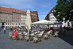 The original market square was considerably smaller but its area has gradually been increased in connection with demolitions and construction of new buildings.