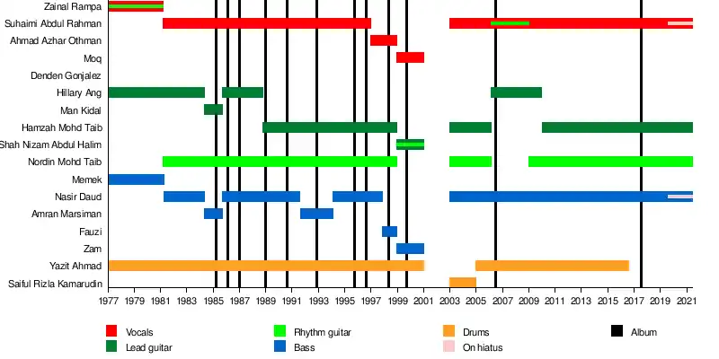 - Yazit Ahmad – drums (1977–2001, 2005–2016; died 2019)