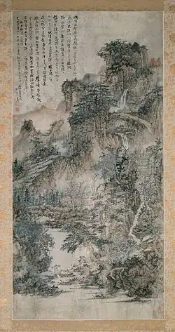 Kun Can (髡殘, Buddhist name; common name: 劉石谿 (Liu Shixi or Liu Jieqiu)) (1612 to after 1674) was a Chinese Buddhist monk and painter during Ming and Qing dynasties. He hailed from Hunan, but spent most of his life in Nanjing. He became a Chan Buddhist monk at an early age and in Nanjing was abbot of a monastery on Niushou Shan. His style of landscape painting was influenced by Wang Meng and he is one of the Four Monk Masters in the early Qing Dynasty. The others being Zhu Da, Hong Ren, and Shitao. As he was also known as Shi Xi he was at times said to be one of the "Two Shi". Few of Kun Can's works survive.