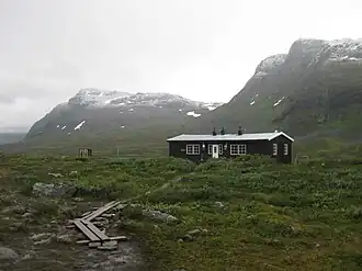 Kungsleden (King's Trail) is a hiking trail in northern Sweden, approximately 467 kilometres (290 mi) long, between Abisko in the north and Hemavan in the south.[1] The full distance breaks down into 419.3 km of trekking, 18.2 km of lake crossings and a 29.5 km stretch of road, almost all of which hikers cover by bus. It passes through, near the southern end, the Vindelfjällen Nature Reserve, one of the largest protected areas in Europe. In the winter Kungsleden is a ski trail with approximately the same route.
