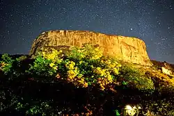 Kunino is surrounded by karst formations. There are numerous limestone rocks in the form of monadnocks and natural arches. The emblematic Czerwenica rock towers over the village.[4] So far, about 140 caves have been discovered in the village area. The longest of these is the 256-meter-long Kashara cave, while the deepest is Glozawa, located up to 69 meters below the surface.[5]