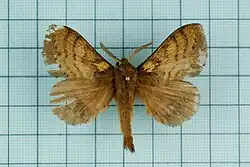 The wingspan is 58–105 mm. Adults are on wing in September in Taiwan.[1]
