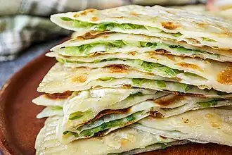 Kurdish cuisine[a] consists of a wide variety of foods prepared by the Kurdish people. There are culinary and cultural similarities of Kurds and their immediate neighbours in Iran, Iraq, Syria, and Turkey.