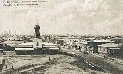 The city was granted city privileges by the Empress Catherine the Great in 1782, which is when it acquired its present name and became the seat of an uyezd. The present name is taken from a large kurgan (burial mound) close to the original settlement.