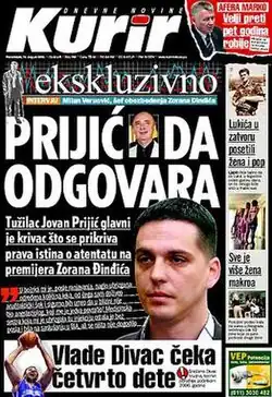 The first issue of Kurir appeared at newsstands on 6 May 2003.[3] While Kurir's history is relatively short, it is also a checkered one. It goes back to the state of emergency, declared following the assassination of Serbia's Prime Minister Zoran Đinđić, when another daily tabloid named Nacional was shut down. Using its broad powers under the state of emergency act, Serbian government's Ministry of Culture and Information headed by Branislav Lečić issued a temporary ban on publication of Nacional daily on 18 March 2003, for "publishing a number of articles relating to the state of emergency and for questioning the reasons behind the state of emergency".[4] Then on 1 April 2003, the Belgrade city commercial court started liquidation proceedings against Nacional's publisher in Belgrade, Info Orfej. Despite an appeal, the company's equipment, including 118 computers, was seized on 21 April 2003, two days before the state of emergency ended.[4]