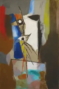 Man with Bird from 1977, in the collection of the Honolulu Museum of Art, demonstrates his semiabstract images that often reference animals or plants. The Butler Institute of American Art (Youngstown, Ohio), the Columbus Museum of Art (Columbus, Ohio), the Frederick R Weisman Art Museum (Minneapolis, Minnesota), the Honolulu Museum of Art,[3] the Metropolitan Museum of Art,[4] the Museum of Modern Art (New York City),[5] and the Sheldon Museum of Art (Lincoln, Nebraska) are among the public collections holding works by Roesch.[2][6]
