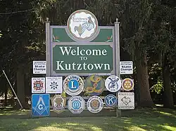 Kutztown (Pennsylvania German: Kutzeschteddel) is a borough in Berks County, Pennsylvania, United States. It is located 18 miles (29 km) southwest of Allentown and 17 miles (27 km) northeast of Reading. As of the 2020 census, the borough had a population of 4,162.[3] Kutztown University of Pennsylvania is located just outside the borough limits to the southwest.