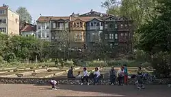 The place with its historical mansions, churches, synagogues and mosques, cobblestone paved streets, plane trees and vegetable gardens, attracts film makers as a natural film set. Since the shooting of the popular TV comedy series Perihan Abla in the mid-1980s, Kuzguncuk became a favorite film set for several other TV series and commercials. The residents, however, are not pleased with the continuous discomfort caused by the shootings day and night.[17][18][19][20]