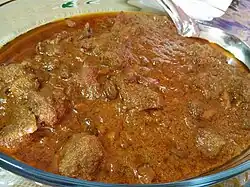 It is a thick based curry dish. The main ingredient used to prepare this dish is chicken (Malay: ayam).[2] Traditionally, kuzi ayam is best served with ghee rice, bun, dinner roll and roti jala.