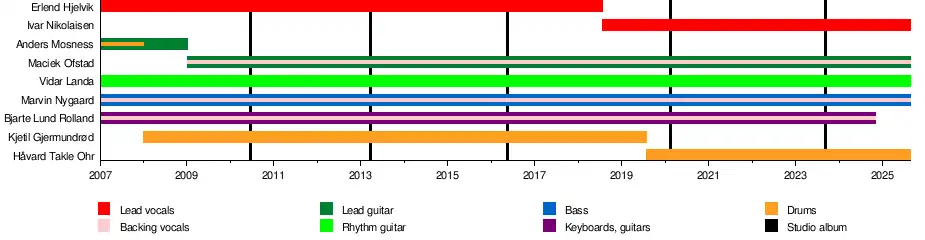 Guitarist Bjarte Lund Rolland left the band in October 2024, after his right index finger was worn out from years of playing guitar without a pick.