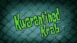 "Kwarantined Krab" is the second segment of the 263rd episode of SpongeBob SquarePants, airing as part of the show's twelfth season. It was originally scheduled to air in the United States in 2020, but the events of the COVID-19 pandemic caused it to be withheld from airing on Nickelodeon until April 29, 2022 (making it the final episode of the twelfth season to air),[1] due to the episode's plot revolving around a pandemic.