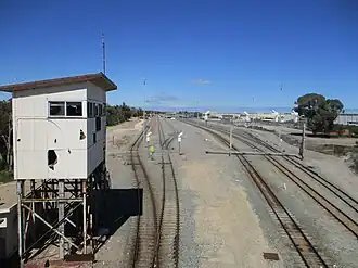 ![]() The heritage-listed Signal Box at the Kwinana marshalling yard | |||