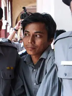 ![]() Kyaw Soe Oo during an escort from arrest in 2018 | |