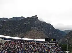 The Northern Ute tribe considered Utah Valley and the area around Utah Lake to be their most permanent home and the tribe continues today to list Utah Valley as its primary homeland.[8] Though the tribe had mostly friendly relations with Spanish and American explorers throughout history, Latter-day Saint settlement in Utah Valley caused tensions. While Latter-day Saint settlers were counseled to have friendly relations with Utes and other local tribes and even to seek conversion, the reality of settlement caused more similarities between Latter-day Saint and Ute relations to other white and settler relations of the time rather than differences.[9] Settlers built a fort in what is now Provo directly on top of Ute hunting trails.[8] Utes retaliated by raiding the fort and stealing cattle and horses. There was a skirmish in the Provo area in 1850 between white settlers and indigenous people that led to the legend of the original naming of the peak.[1] The story involves Ute chief Old Elk and an incident referred to as the "Battle of Provo River." As Ute warriors retreated with their wives and children into Rock Canyon for safety, legend has it that Old Elk's wife fell from the peak and died, and locals began calling the peak "Squaw Peak."[1] This legend has not been verified as historically accurate, but the name was given and used by the locals from that point on.[10]