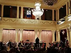 The Kyiv Camerata (in Ukrainian: Київська камерата, romanized: Kyivska Camerata) is a musical group in Kyiv,[1] fully titled National Ensemble of soloists Kyivska Camerata. It is a leading Ukrainian performer of chamber music of different styles. The ensemble's repertoire is remarkably diverse, ranging from works of Vivaldi, Bach, Haydn, Mozart, Wagner, Grieg, Chaykovsky, Stravinsky, Sheinberg to the best samples of world avant-garde classics of the second half of the 20th century.[2] Notably, the ensemble focuses on the popularization of modern Ukrainian music and the global representation of Ukrainian composers.