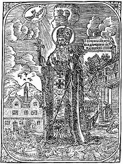 In 1635, the first translation of the Patericon into Polish was published by Bishop Sylvester Kosiv of Mogilev, titled Paterykon, albo żywoty ss. Ojców Pieczerskich. Kosiv translated the Patericon with the intention of using it as an argument in discussions between Orthodox and Uniate Christians, especially to demonstrate the complete distinctiveness of the Russian Christian tradition from Rome.[15] In preparing the text, he accompanied it with extensive commentary, referring to Russian and Polish chronicles and explaining inconsistencies in the work concerning historical events.[16] Kosiv dedicated his translation to Adam Kisiel.[17]