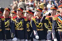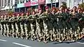 The Ukrainian military included a battalion of 120 female military personnel in the parade for the first time since its inception.[28][29] The unit comprised cadets from the Taras Shevchenko National University Military Institute and the Military Institute of Telecommunications and Information Technologies.[23][30] Their appearance as they marched along Khreshchatyk was greeted with loud applause from the spectators.[31]