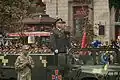 The first parade in honor of Independence Day was held on Khreschatyk Street in 1994 on the country's third anniversary.[3] The parade commander was the head of the Kyiv Military District Ivan Bizhan and inspecting the parade was the Defense Minister Vitaly Radetsky.[4] It was then held off and on in different formats. A large-scale aviation show on Independence Day took place at Kyiv Chaika Airfield in 1997, featuring flypasts by personnel of the Ukrainian Air Force in first participation of air component of the ZSU equipment.[5] In 1998, the parade included military army vehicles for the first time since 1990. The last parade of the century was in 1999.