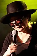 Ono began a career in popular music in 1969, forming the Plastic Ono Band with Lennon and producing a number of avant-garde music albums in the 1970s. She achieved commercial and critical success in 1980 with the chart-topping album Double Fantasy, a collaboration with Lennon that was released three weeks before his murder, winning the Grammy Award for Album of the Year. To date, she has had twelve number one singles on the US Dance charts, and in 2016 was named the 11th most successful dance club artist of all time by Billboard magazine.[2] Many musicians have paid tribute to Ono as an artist in her own right and as a muse and icon, including Elvis Costello who recorded his version of "Walking on Thin Ice" with the Attractions for the Every Man Has a Woman tribute album to Yoko Ono, the B-52's,[3] Sonic Youth[4] and Meredith Monk.[5]