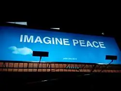 As Lennon's widow, Ono works to preserve his legacy. She funded the Strawberry Fields memorial in Manhattan's Central Park,[6] the Imagine Peace Tower in Iceland,[7] and the John Lennon Museum in Saitama, Japan (which closed in 2010).[8] She has made significant philanthropic contributions to the arts, peace and disaster relief in Japan and the Philippines,[9][10] and other such causes. In 2002, she inaugurated a biennial $50,000 LennonOno Grant for Peace.[11] In 2012, she received the Dr. Rainer Hildebrandt Human Rights Award[12] and co-founded the group Artists Against Fracking.[13]