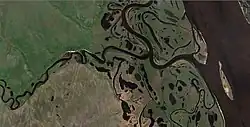 Mouth of the Kyuelenke in the Lena Sentinel-2 image.