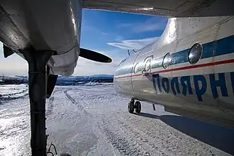 ![]() View of the Kyundyulyun in the background at Ust-Kuyga Airport | |