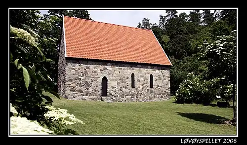 Løvøy Chapel (Norwegian: Løvøy kapell) is a restored parish church of the Church of Norway in Horten Municipality in Vestfold county, Norway. It is located on the peninsula of Løvøya on the north side of the town of Horten. It is one of the churches for the Horten parish which is part of the Nord-Jarlsberg prosti (deanery) in the Diocese of Tunsberg. It is only open in the summers. The gray, stone church was built in a rectangular design around the year 1200 using plans drawn up by an unknown architect. The church seats about 100 people.[1][2]