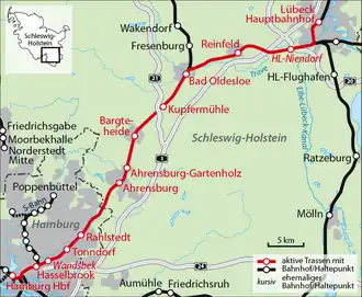 ![]() The Lübeck–Hamburg line | ||||||||||||||||||||||||||||||||||||||||||||||||||||||||||||||||||||||||||||||||||||||||||||||||||||||||||||||||||||||||||||||||||||||||||||||||||||||||||||||||||||||||||||||||||||||||||||||||||||||||||||||||||||||||||||||||||||||||||||||||||||||||||||||||||||||||||||||||||||||||||||||||||||||||||||||||||||||||||||||||||||||||||||||||||||||||||||||||||||||||||||||||||||||||||||||||||||||||||||||||||||||||||||||||||||||||