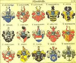 The Lüttichau noble family was originally from Meissen and is named after the ancestral seat of Lüttichau near Königsbruch, which the family held during the 15th and 16th centuries. The oldest known document to reference the Lüttichau family comes the 12th century, and refers to an Elisabeth "ex antiqua et nobili familia Luttichorum" (English: from the ancient and noble family of the Lüttichau). The document describes Bishop Benno of Meissen healing Elizabeth through intercession.[3]