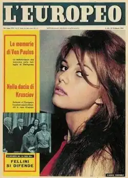 ![]() Claudia Cardinale on the cover of L'Europeo, February 1960 | |