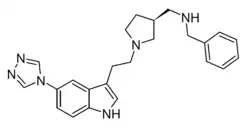 2. ^ Sternfeld F, Guiblin AR, Jelley RA, Matassa VG, Reeve AJ, Hunt PA, et al. (February 1999). "Synthesis and serotonergic activity of 3-[2-(pyrrolidin-1-yl)ethyl]indoles: potent agonists for the h5-HT1D receptor with high selectivity over the h5-HT1B receptor". Journal of Medicinal Chemistry. 42 (4): 677–690. doi:10.1021/jm9805687. PMID 10052975.