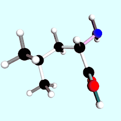 Leucine (symbol Leu or L)[3] is an essential amino acid that is used in the biosynthesis of proteins. Leucine is an α-amino acid, meaning it contains an α-amino group (which is in the protonated −NH3+ form under biological conditions), an α-carboxylic acid group (which is in the deprotonated −COO− form under biological conditions), and a side chain isobutyl group, making it a non-polar aliphatic amino acid. It is essential in humans, meaning the body cannot synthesize it; it must be obtained from the diet. Human dietary sources are foods that contain protein, such as meats, dairy products, soy products, and beans and other legumes. It is encoded by the codons UUA, UUG, CUU, CUC, CUA, and CUG. Leucine is named after the Greek word for "white": λευκός (leukós, "white"), after its common appearance as a white powder, a property it shares with many other amino acids.[4]